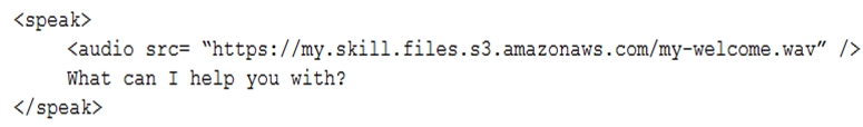 An Alexa Skill Builder wants to add a short audio clip to a skill with SSML. The Builder records a 6-second audio clip using a high-end microphone and recording application and exports the file with a bitrate of 48 kbps. The file is then uploaded to a public Amazon S3 bucket.
