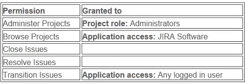 View the extract of a Jira Software Scrum project's permission scheme shown.