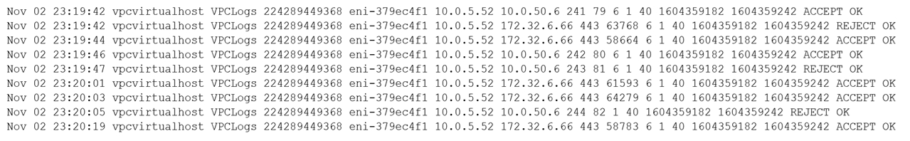 A security analyst observes the following while looking through network traffic in a company's cloud log: