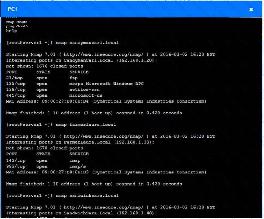 • Using the available tools, discover devices on the corporate network and the services running on these devices.