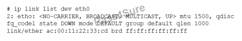 A systems administrator is troubleshooting connectivity issues and trying to find out why a Linux server is not able to reach other servers on the same subnet it is connected to. When listing link parameters, the following is presented: