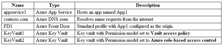 You need to ensure that App1 can be accessed by using a URL of https://app1.contoso.com. The solution must ensure that all the traffic for App1 is routed via FD1.