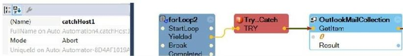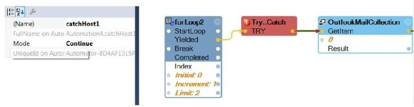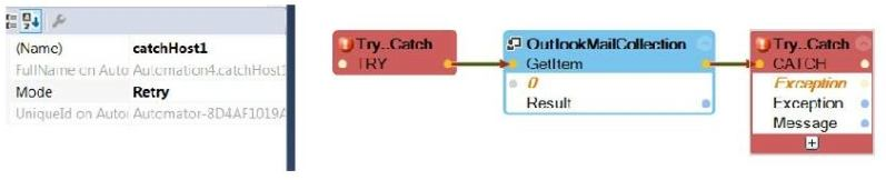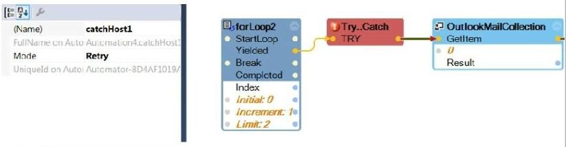 The requirement is to get an item from an Outlook Mail Collection. If there is an exception, retry the GetItem twice.