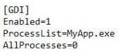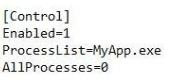 The requirement is to get the text from a specific application (MyApp.exe) using the Control Region functionality. How do you set the OpenSpan.ini configuration setting?